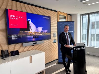 企画委員会(委員長=清水秀樹:日立オーストラリア)は10月22日、ミンターエリソンのジェラード・ドゥーリー・パートナー、Japan Practice Groupを講師に迎え、「法律5大トピック2024/25」を開催した。 セミナーでは、2024/25年度の法分野における5つの重要トピックとして、「外国投資規制(FIRB)の改正」「労働規制の改正」「M&Aファイリング」「気候変動に関する報告義務」「個人情報保護法」を取り上げ、改正点等について分かりやすく解説いただいた。